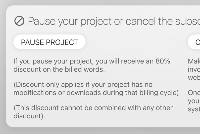 This is why we built the Pause Feature. Instead of deleting your history and breaking your workflow, you can hibernate your project with an 80% discount. Keep your your data safe, without paying for "active" management features you don't need right now.