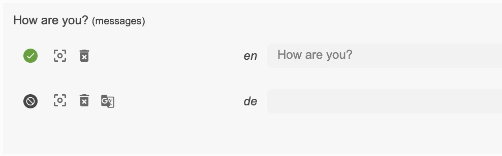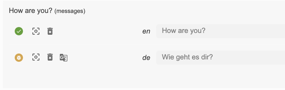 Lastly, with the help of the auto-machinetranslation workflow, new keys not only gets added to Locize automatically, while developing the app, but are also automatically translated into the target languages using machine translation: