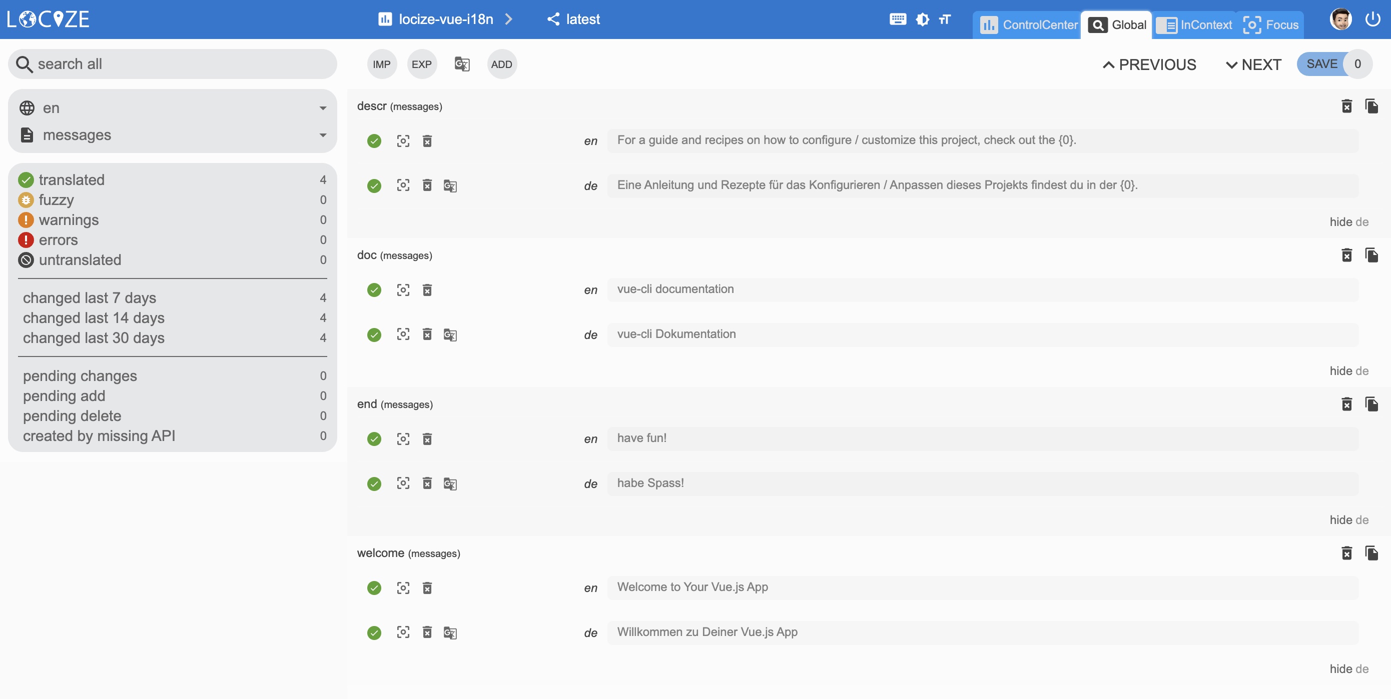 Having imported all translations should look like this: