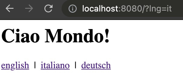 This time we will use a different i18next module, i18next-http-middleware. It can be used for all Node.js web frameworks, like express or Fastify, but also for Deno web frameworks, like abc or ServestJS.