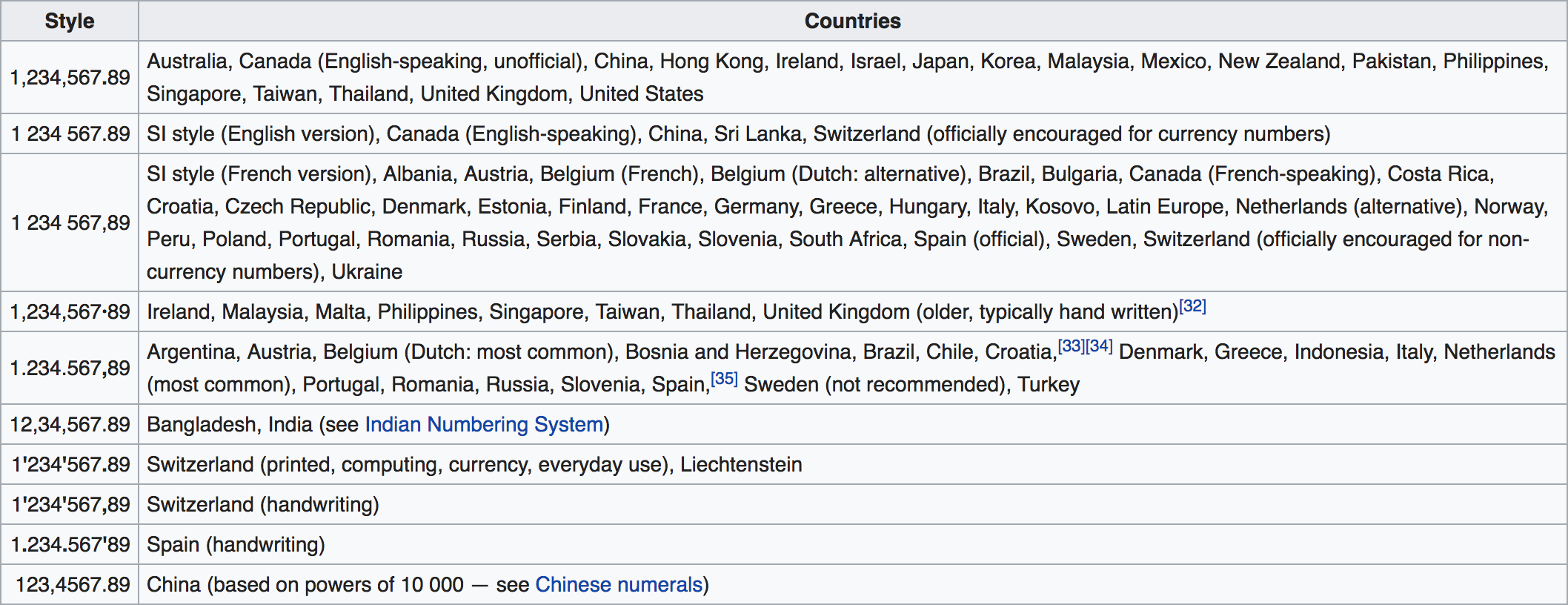 Allow date, time, currency, and numbers to be displayed with differing figures and number separators by language or even region.