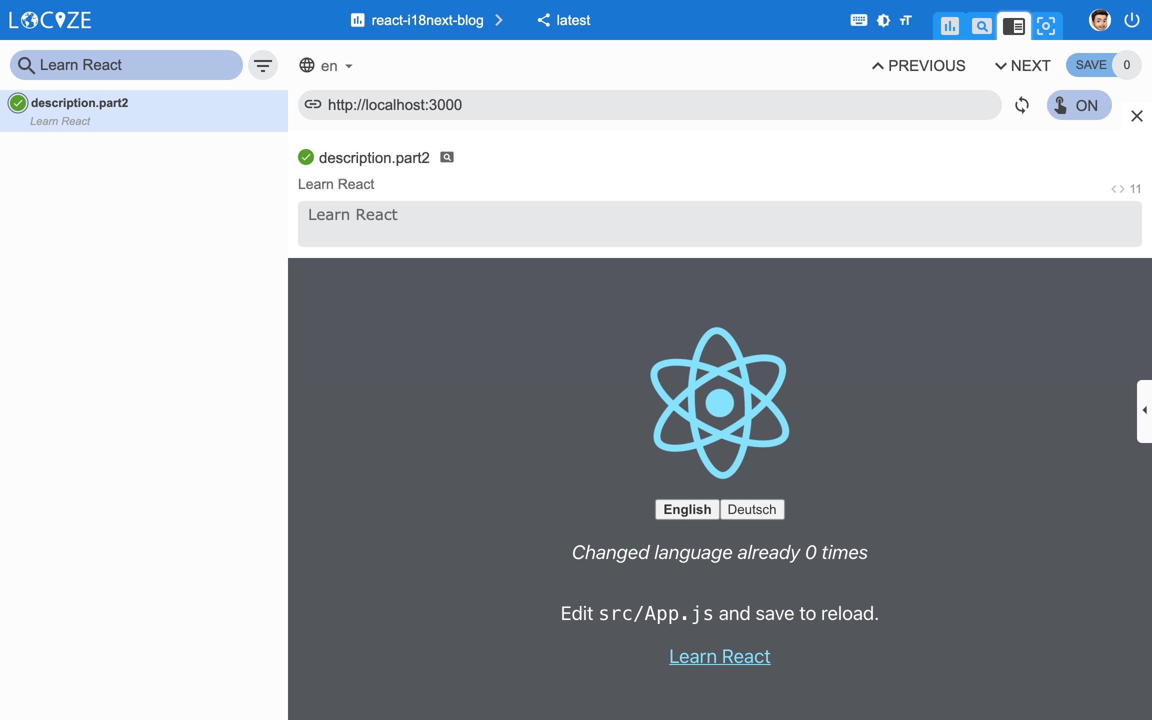 With the help of the Locize plugin, you'll be able to use your app within the Locize InContext Editor.