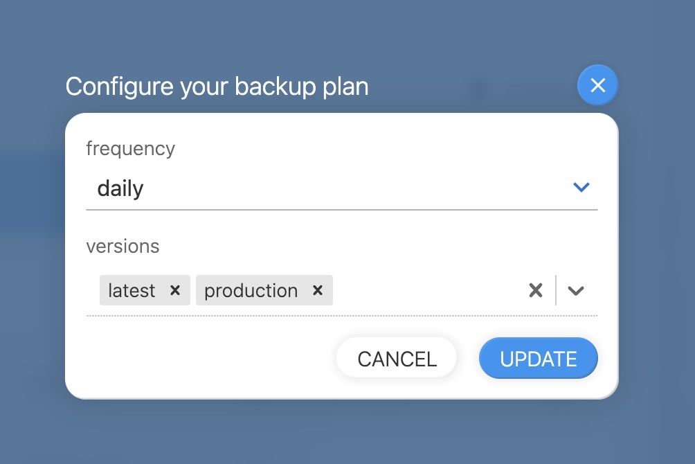 All(default) — backs up every version. Only for Pro plan, Standard plan can select only 1 version- Or select specific version(s) to limit backups.