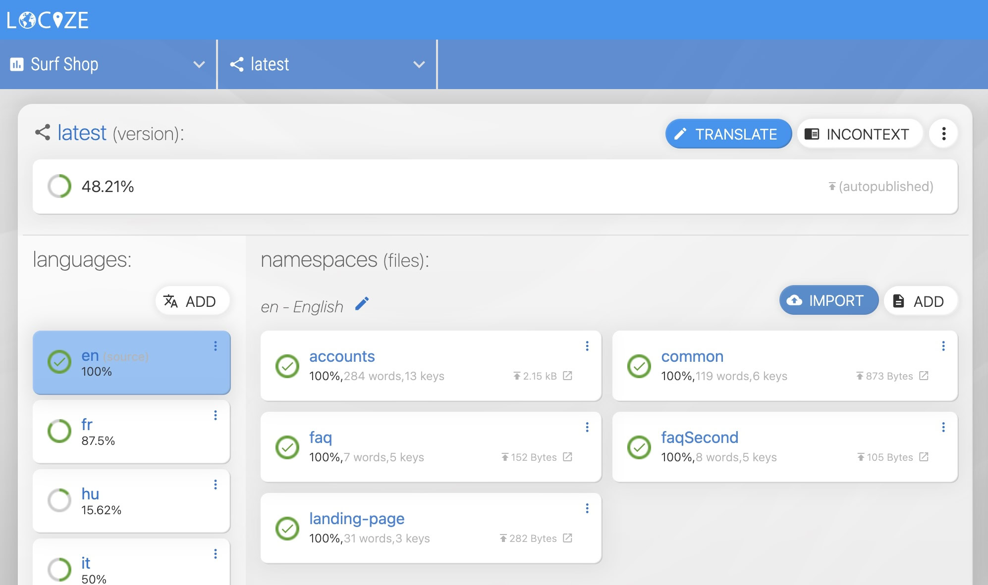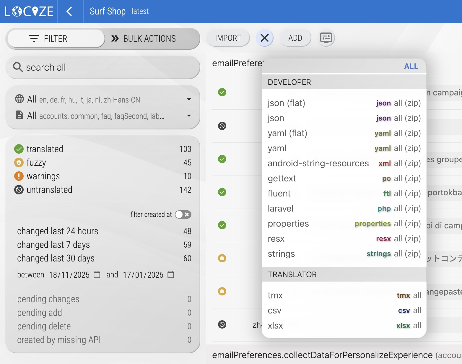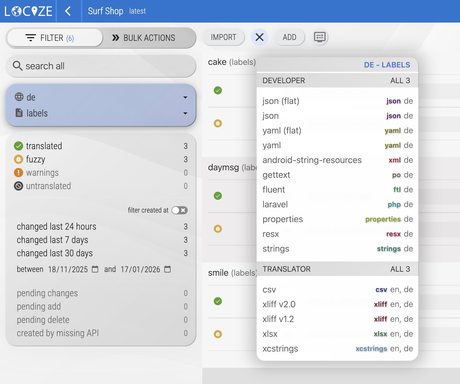 Locize is more than just an import/export tool for translations. It is designed to be an integrated part of your localization workflow — whether in your application code or CI/CD pipeline. However, you can also use Locize to quickly translate files and export the results for use elsewhere.