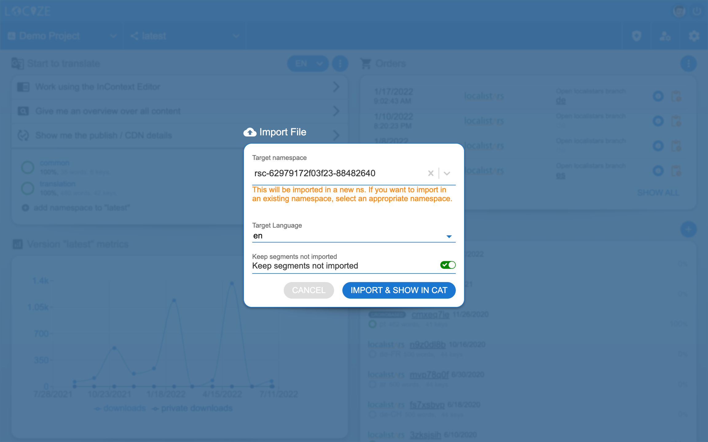 When importing a translation file in the Control Center view, after having selected the file, you'll see a screen like this: