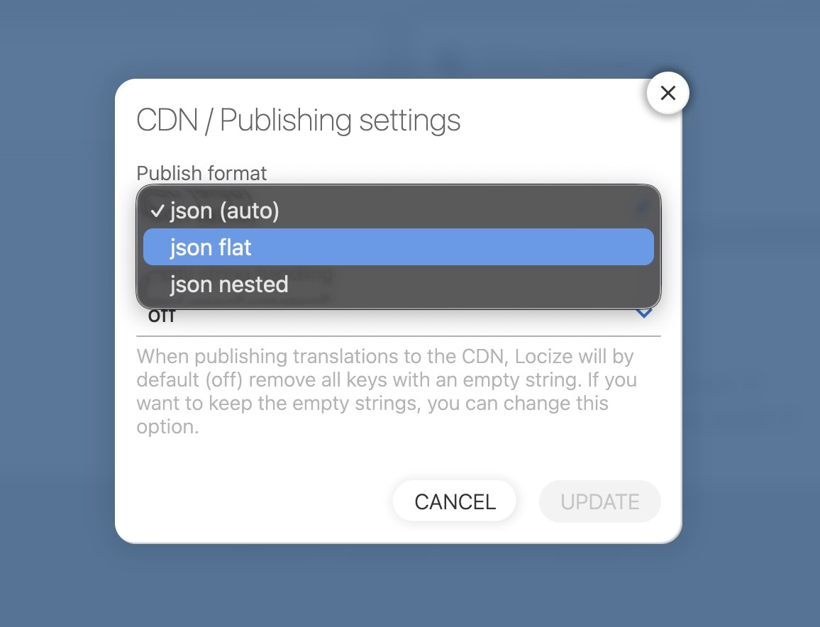 "User not found!"), Locize will switch to a flat JSON format for the whole resource: