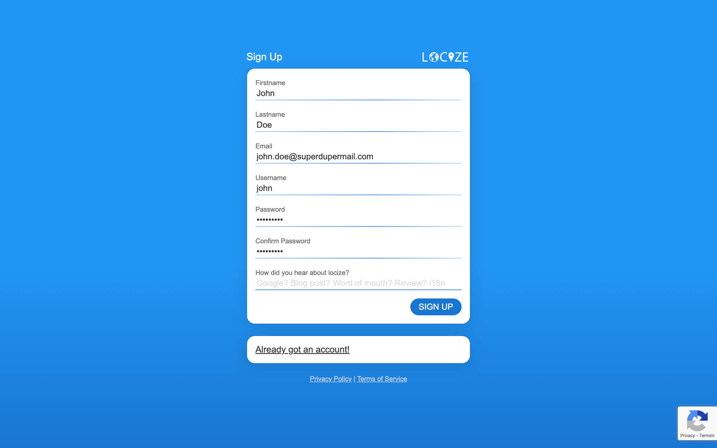 Enter your firstname and lastname, email address, choose a username and define a password.