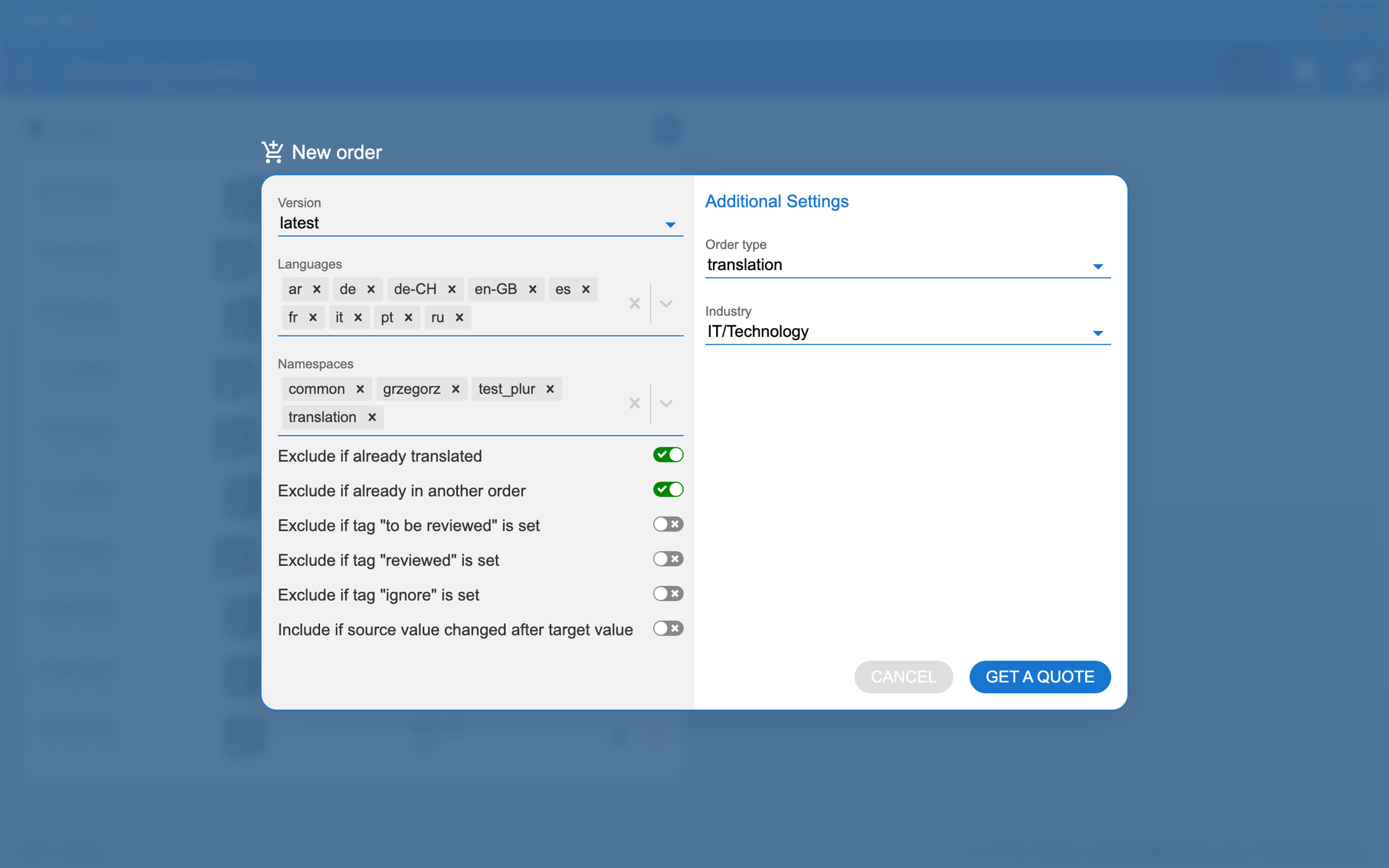 There is also the option of a completely separate localization process. If new translations need to be “done”, a kind of internal “order” can be made with the help of the branched projects.