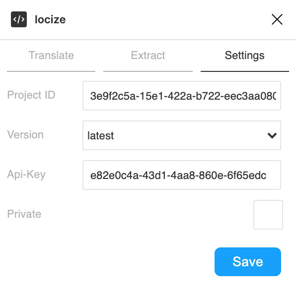 - If your chosen Locize version is configured with private publish mode, click the private checkbox.