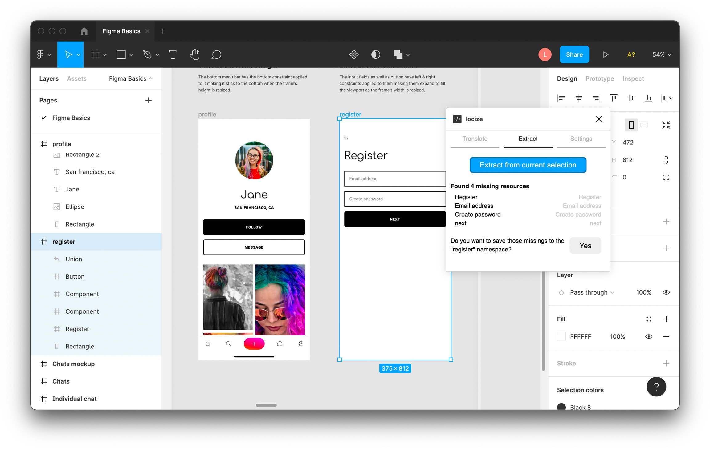 When clicking "Extract from current selection", you'll see it uses the layer names as segment key names for Locize and it uses the frame name (or page name) as namespace name for Locize.