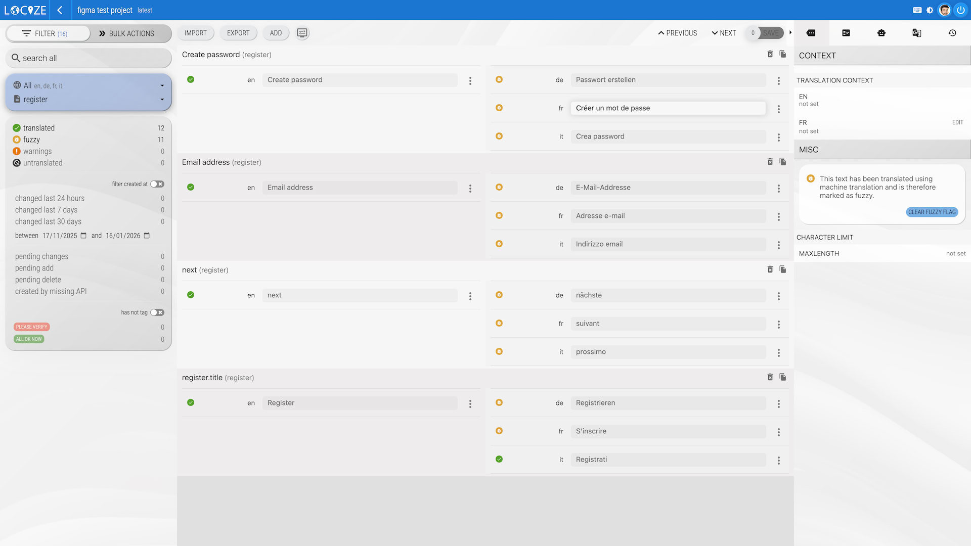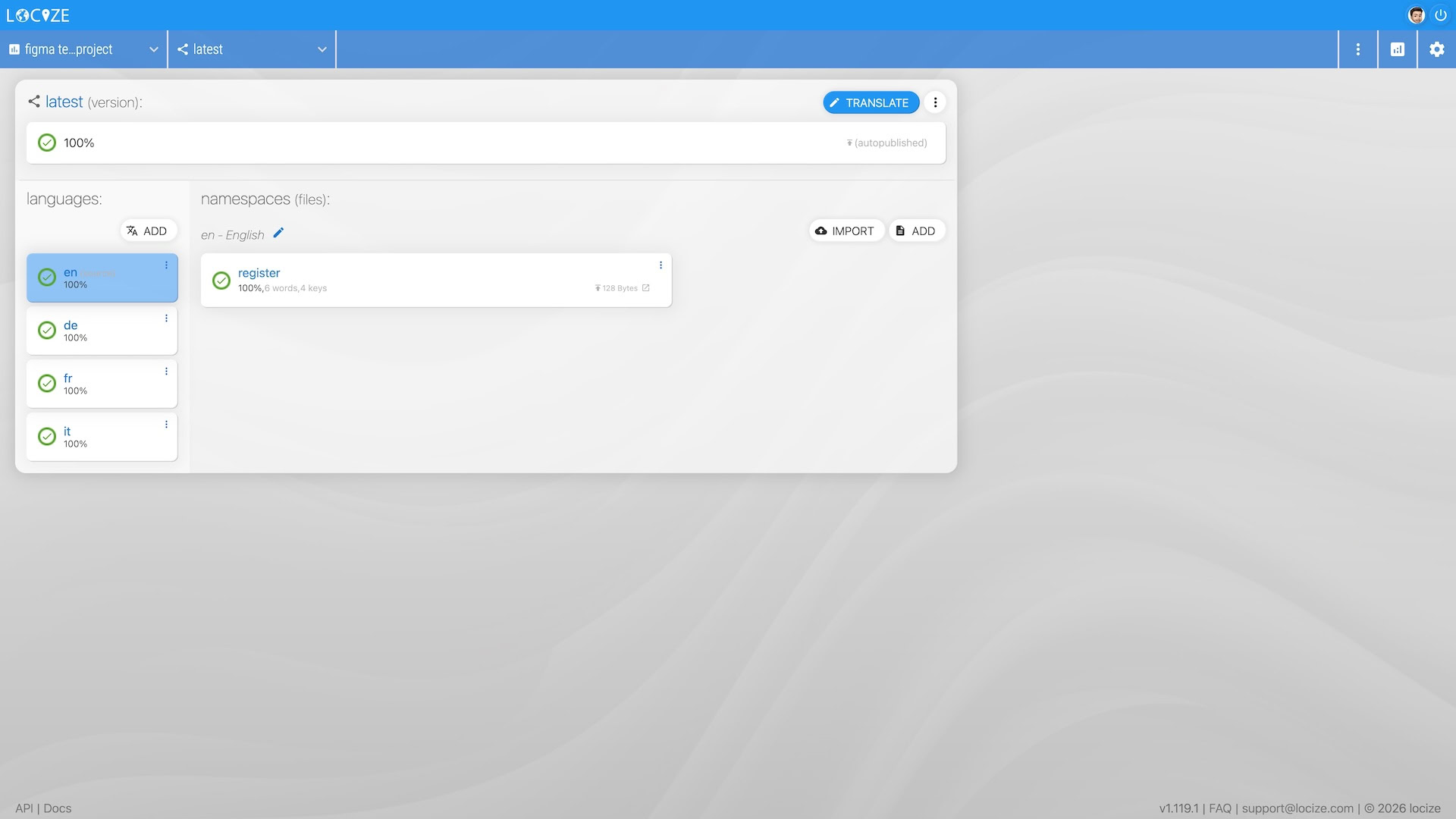 Now you can add new languages in Locize or change the text in Locize and validate it in figma with the "Translate" tab.