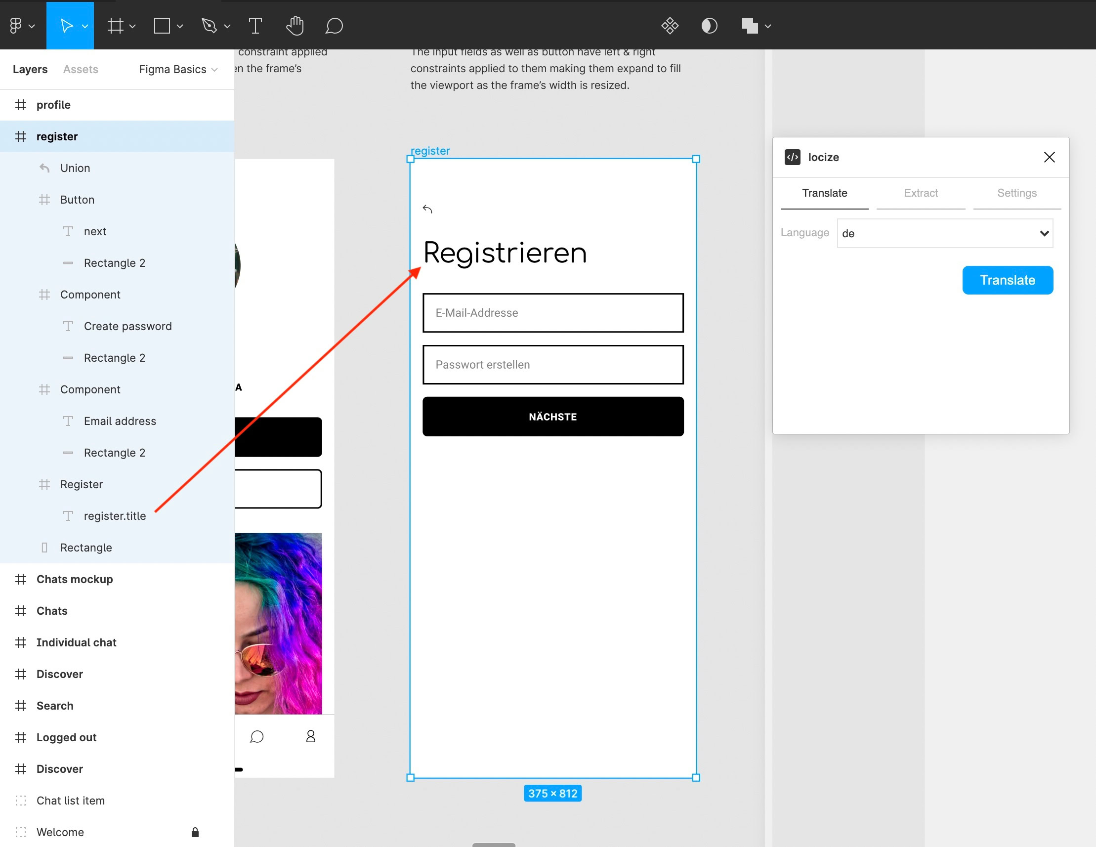 Back to figma, you can now switch to the "Translate" tab, choose another language, and click the "Translate" button, like described here.