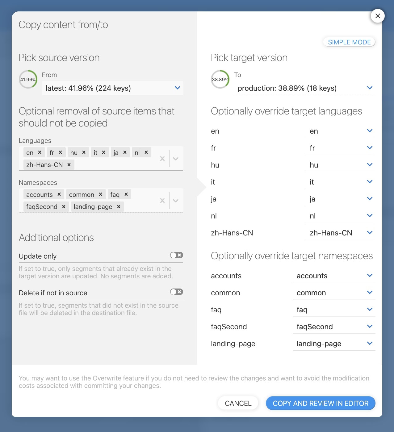 When you're ready to promote translations to the next stage, copy resources from latest to staging or production by creating a new version (e.g., naming it "staging").