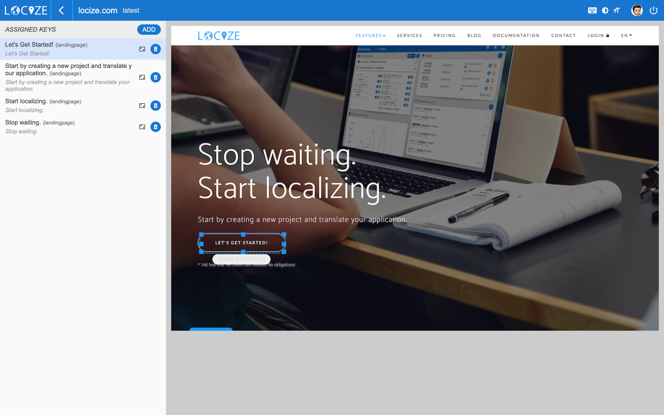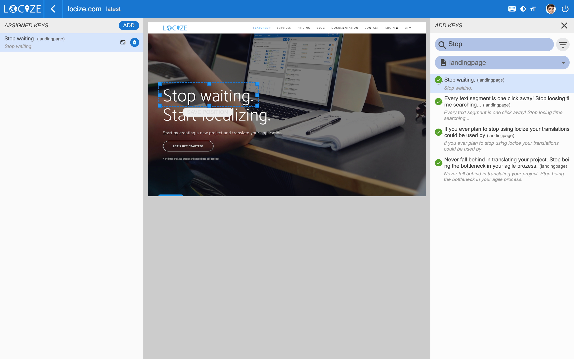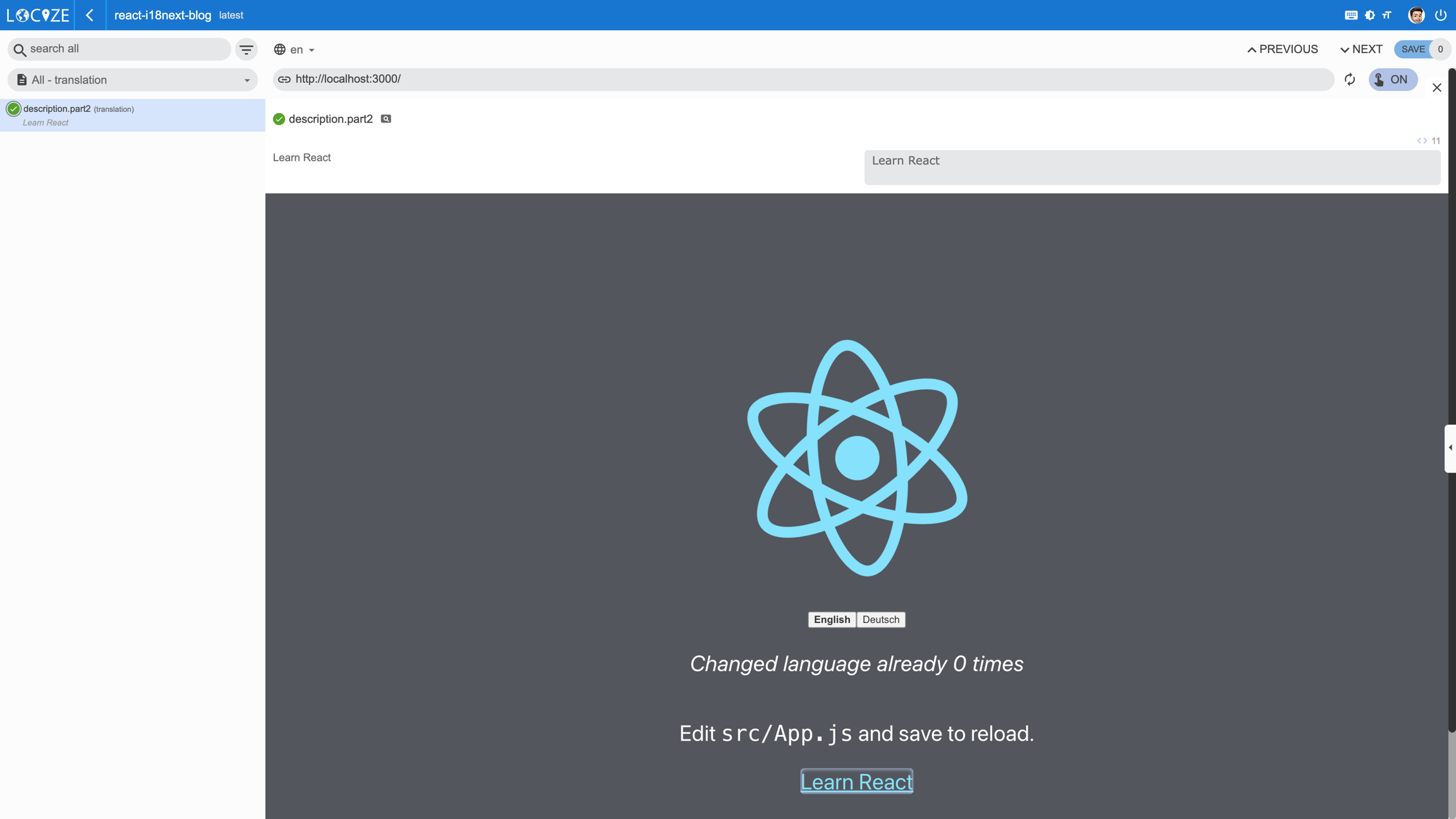 The InContext view enables you to directly connect content from your website / application with your content on your localization project on Locize. To know more about it, check out this guide.