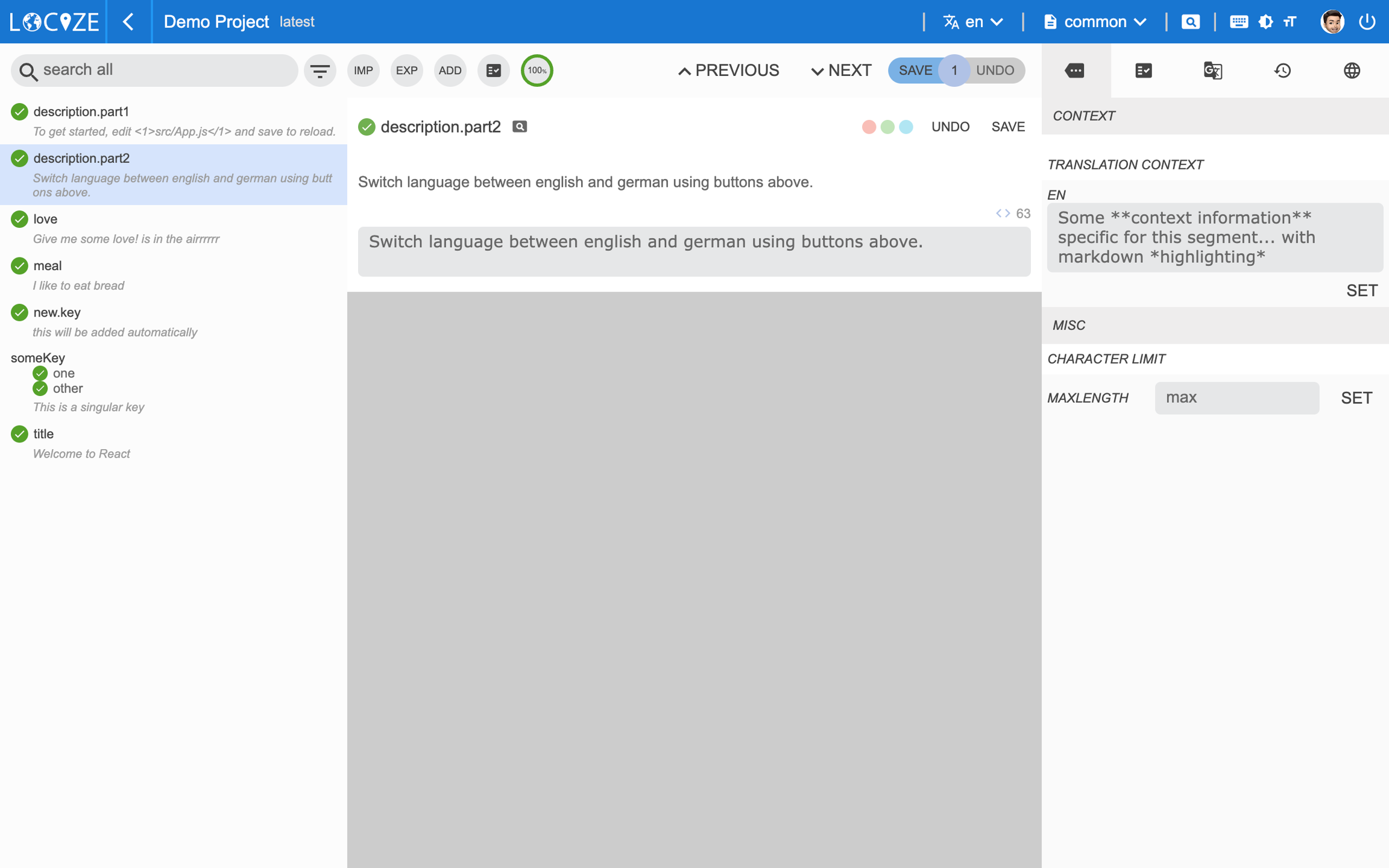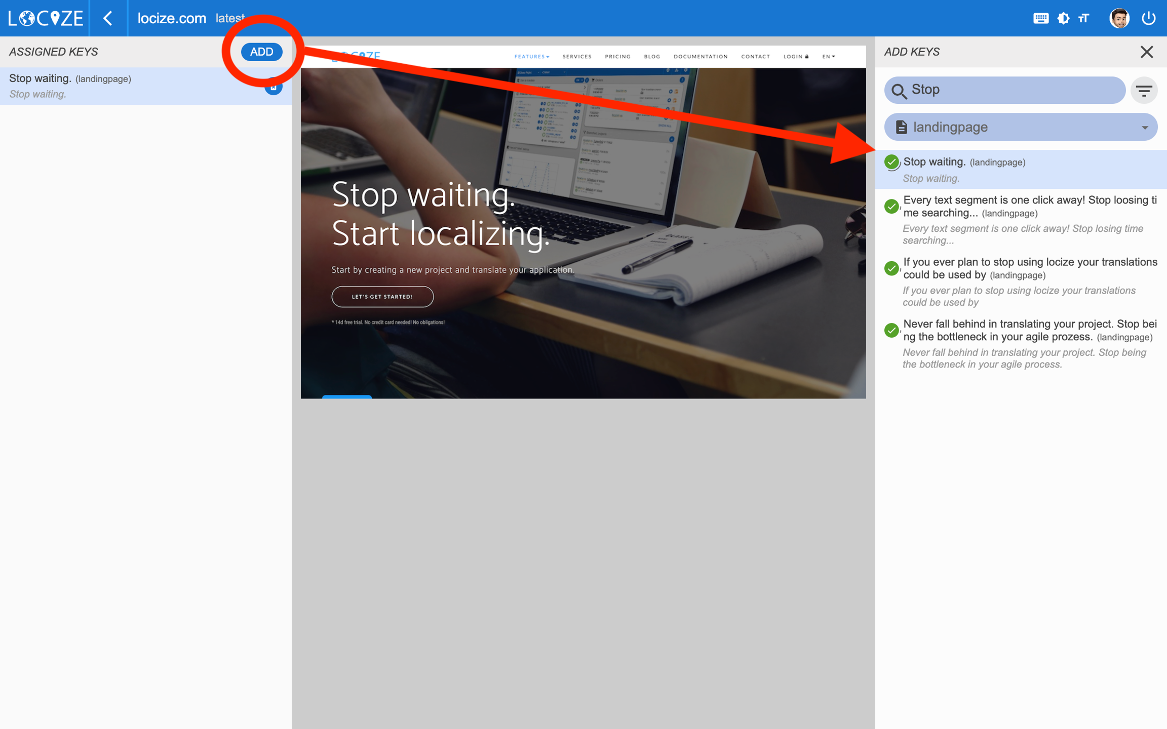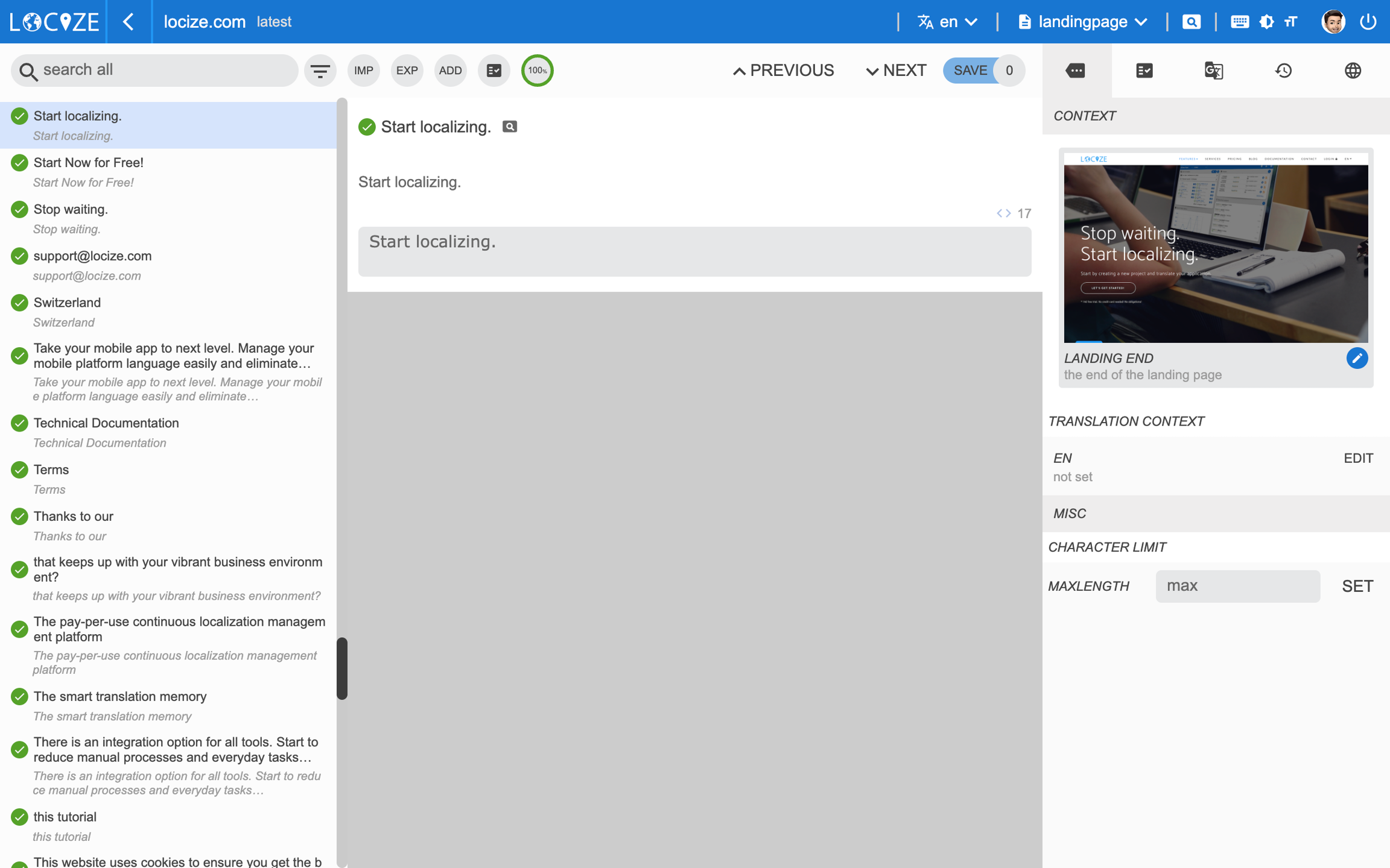 The InContext view enables you to directly connect content from your website / application with your content on your localization project on Locize. To know more about it, check out this guide.