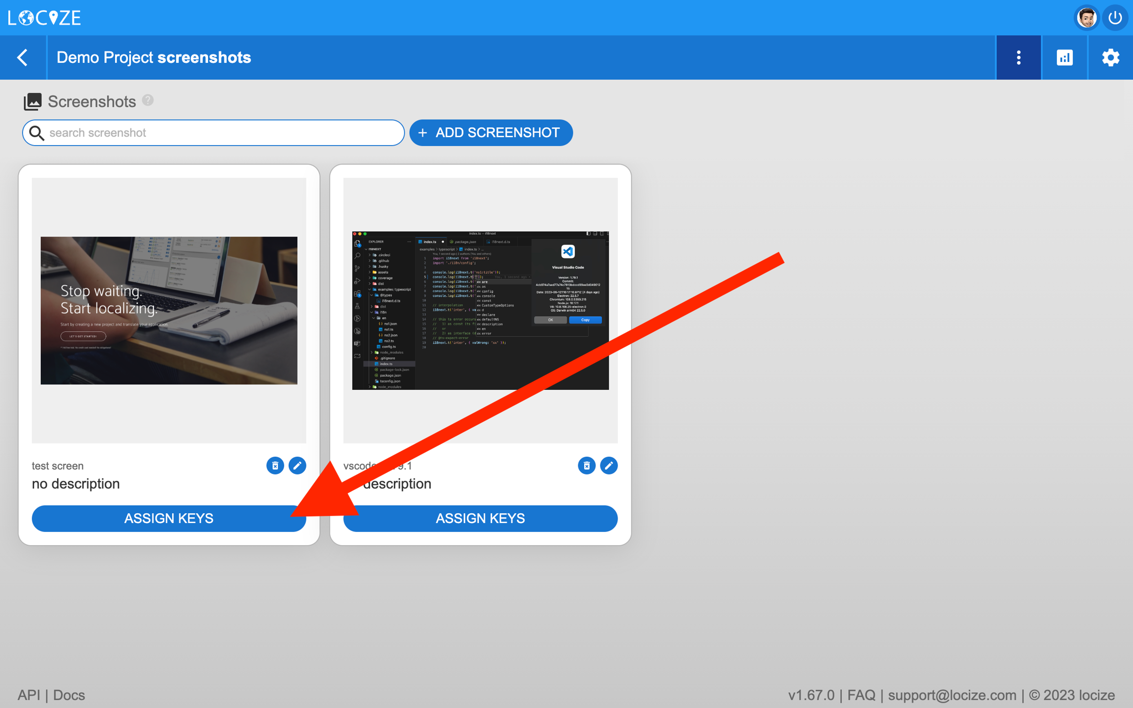 Another great way to provide better context information for your translators, is using the screenshot feature.